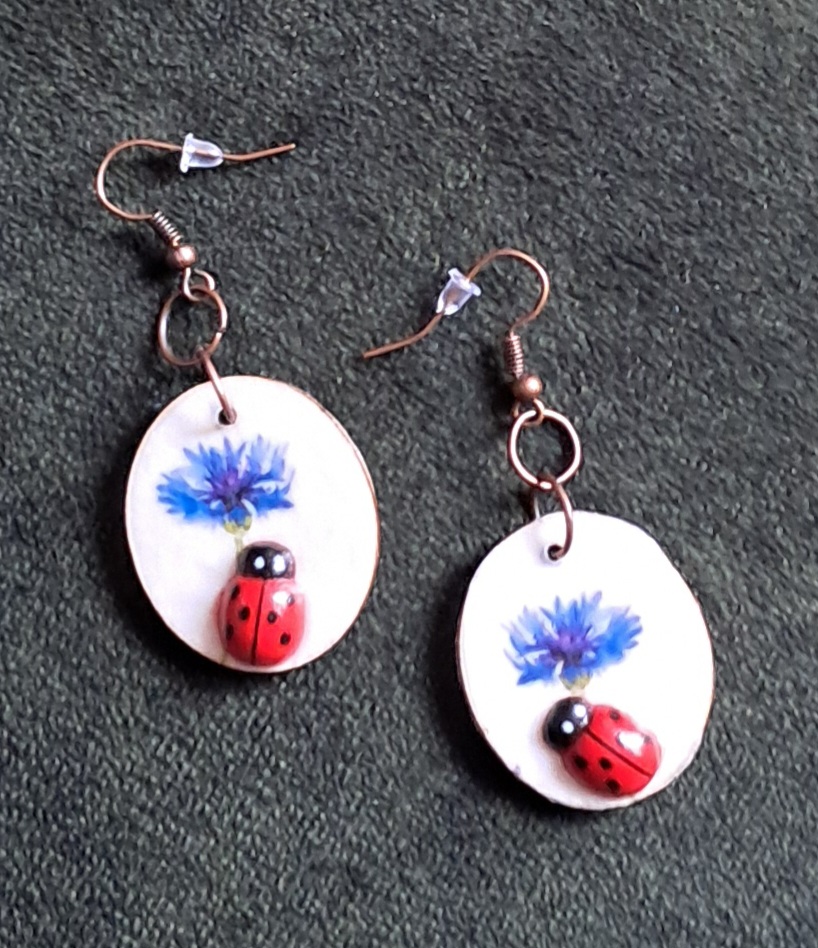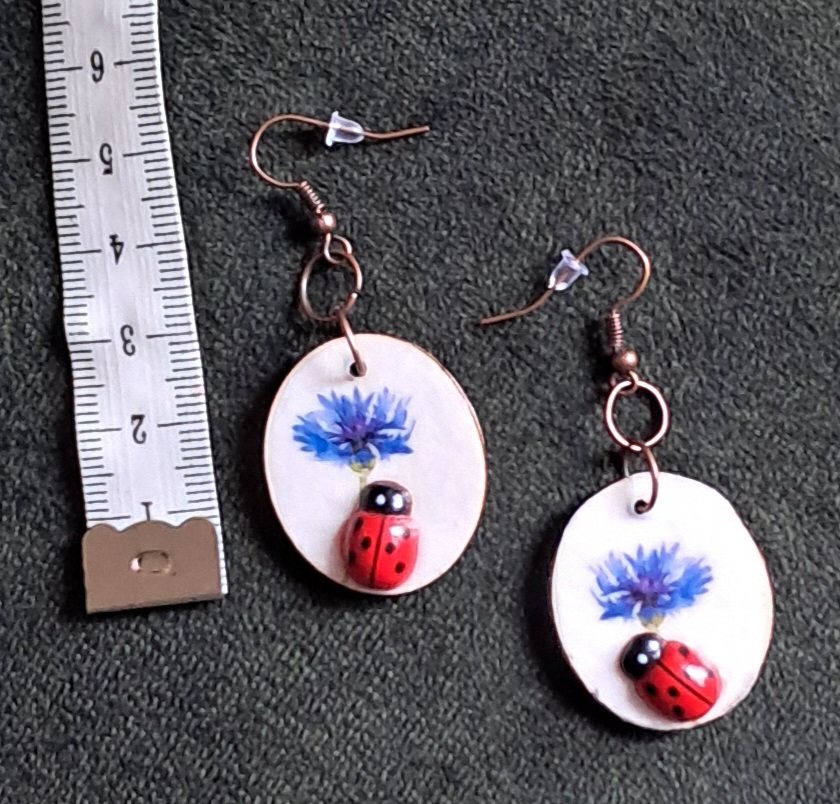 Drevené náušnice Lienky - technika dekupáž. Obojstranné.