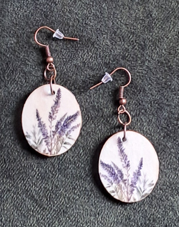 Náušnice Levanduľa - dekupáž