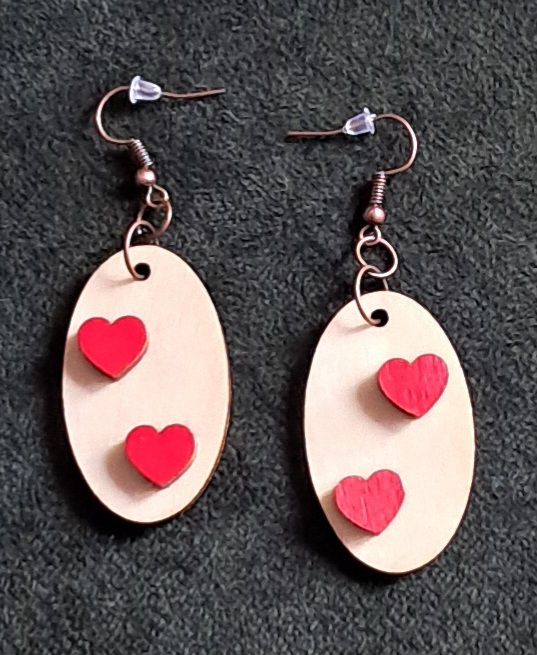Náušnice drevené s červenými srdiečkami