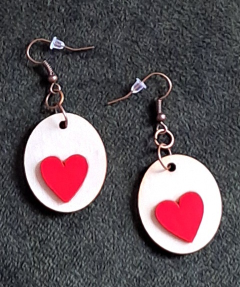 Náušnice drevené s červeným srdiečkom
